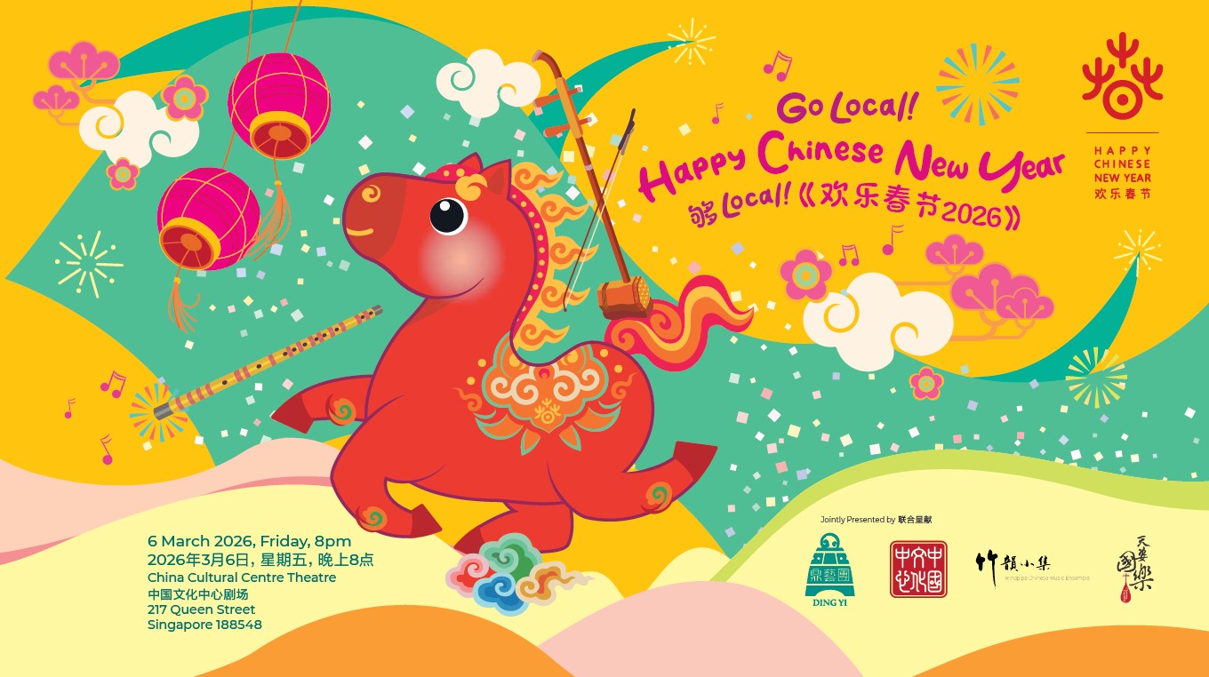 6 March 2026, Fri, 8pm China Cultural Centre Theatre217 Queen Street, Singapore 188548 Synopsis Celebrate the Year of the Horse with Ding Yi Music Company at the Go Local! Happy Chinese New Year Concert, presented in collaboration with the China Cultural Centre. This festive celebration brings together Ding Yi musicians with guest artists from Hong